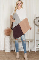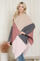 Embrace cozy elegance with our Knitted Geometric Square Multi Color Poncho. Crafted for warmth and style, its intricate geometric pattern and vibrant hues effortlessly complement any spring wardrobe. Perfect for layering over any outfit, this poncho blends comfort with chic sophistication.