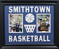 16 x 20 Framed photo showcase features custom engraved photo mat that reads " SMITHTOWN BASKETBALL" with engraved center artwork.