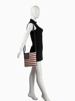An iconic crossbody sling pays homage to the USA with a dazzling stone and studded flag-inspired design.